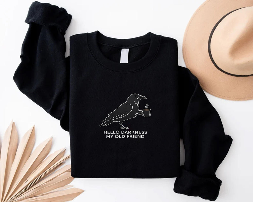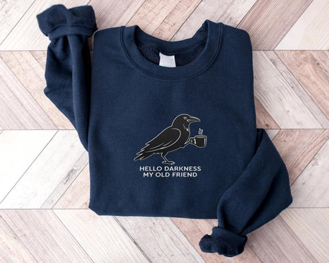Raven Crow Coffee Embroidered Sweatshirt, Halloween Fall Hoodie, Spooky Coffee Shirt, Autumn Long Sleeve Shirt, Gift for Coffee Lover