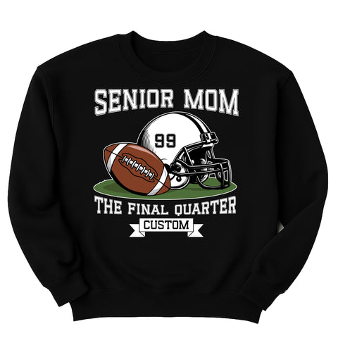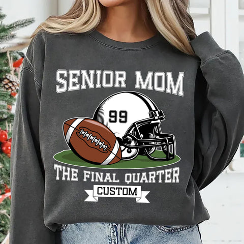 Celebrate your player’s big year with our Senior Football Mom Shirt! Personalize it with your child’s name and number for the perfect keepsake to wear on senior night, game day, or throughout the football season.