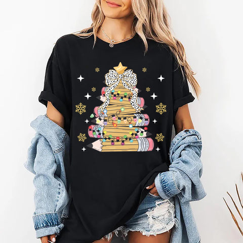Light up the classroom with our Christmas Pencil Tree Teacher Shirt! Designed with crayons, pencils, and festive holiday lights, this shirt makes the perfect Christmas gift for teachers and a fun seasonal option for students.