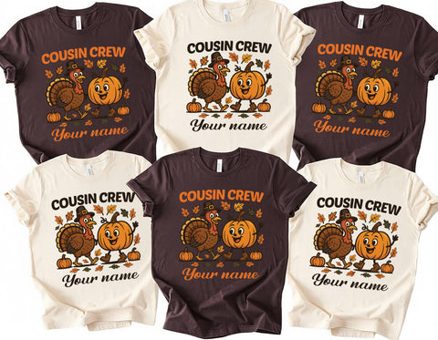 Celebrate Thanksgiving in style with our Custom Cousin Crew Shirt! Perfect for family gatherings, this personalized tee is great for kids and adults alike. Add names or details to create a one-of-a-kind holiday outfit that makes group photos unforgettable.