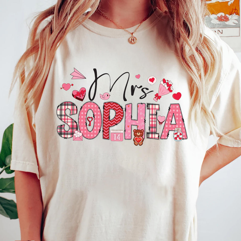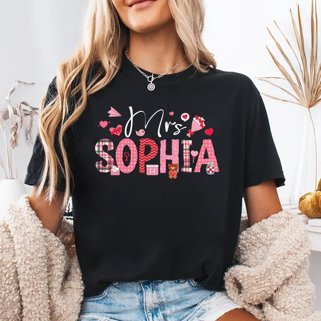 Celebrate Valentine’s Day in the classroom with this adorable Custom Teacher Valentine shirt — personalized with any name for the perfect teacher gift.