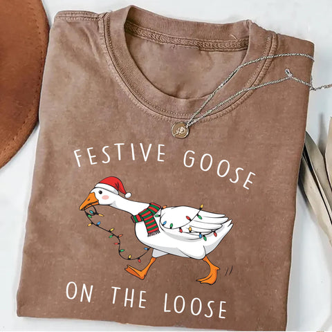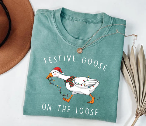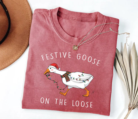 Add some holiday humor with our Goose on the Loose Christmas Shirt! Featuring a funny and adorable goose design, this festive tee makes the perfect Christmas gift for her or any silly goose lover.