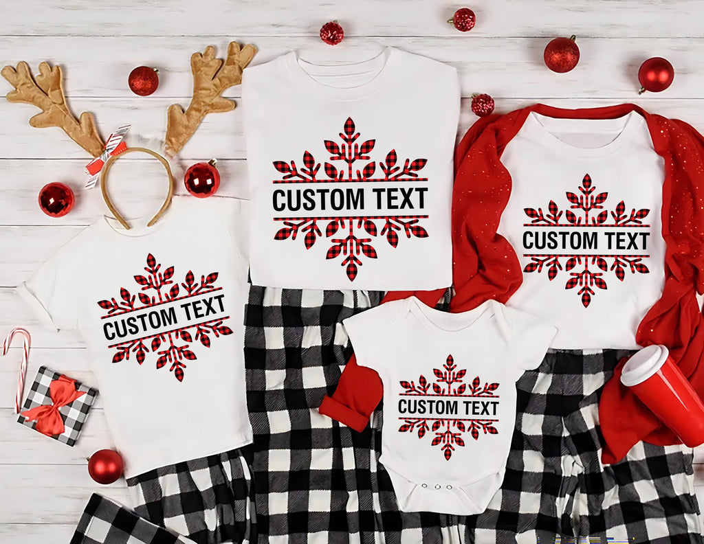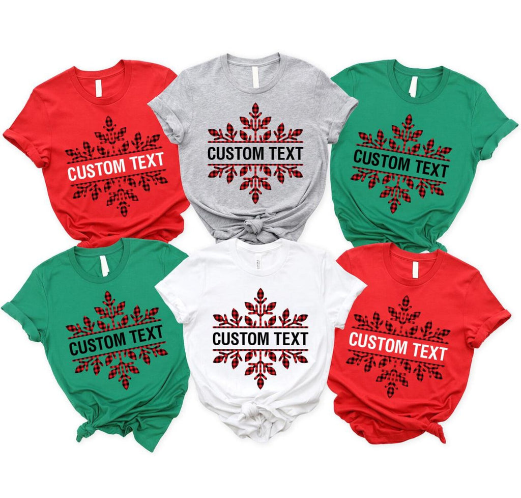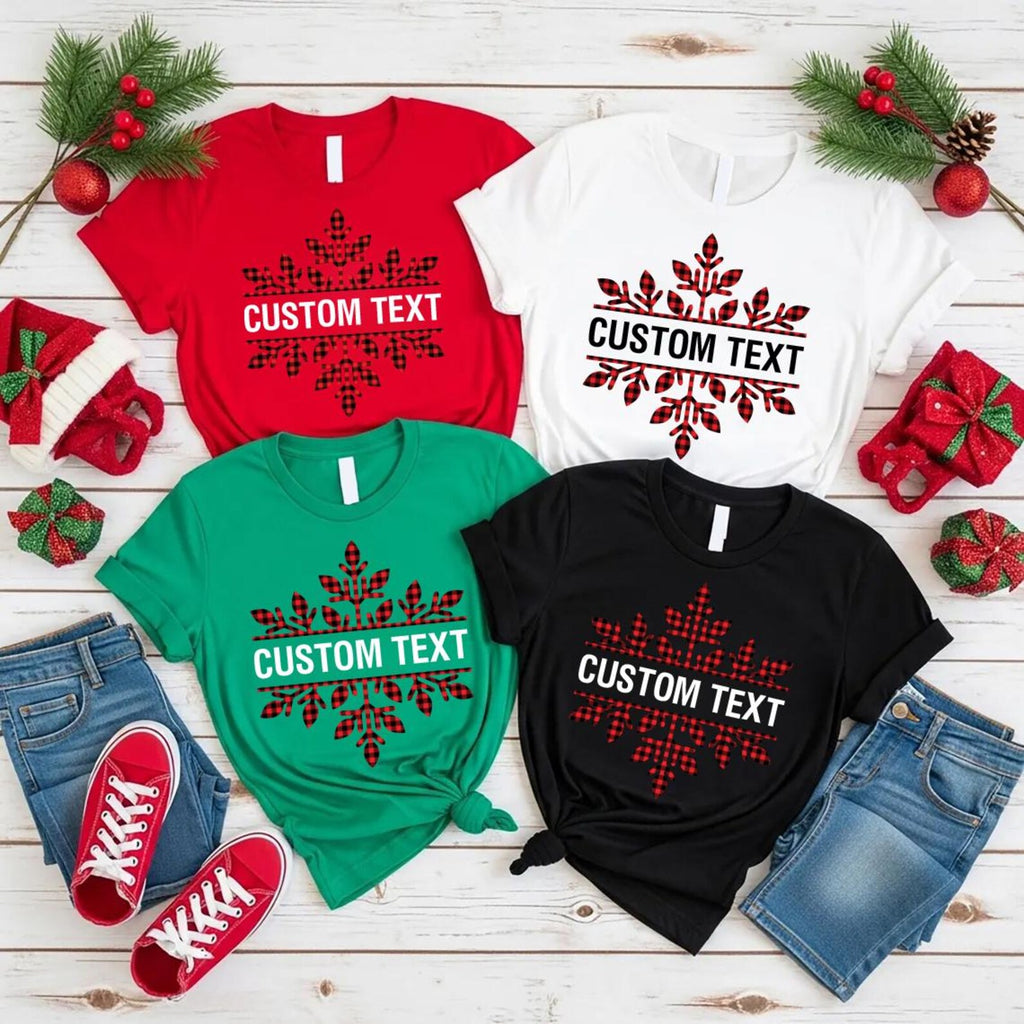 Create memories in style with our Custom Christmas Shirt! Featuring a plaid snowflake and your family name, this matching cousin crew tee is perfect for group photos, parties, and cozy holiday gatherings.