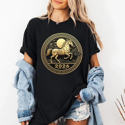 Celebrate the Year of the Horse with our Happy Chinese New Year 2026 Shirt! Designed with a modern crescent and horse motif, this festive tee brings luck, joy, and style to your Lunar New Year celebrations.