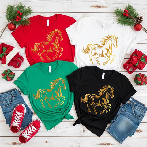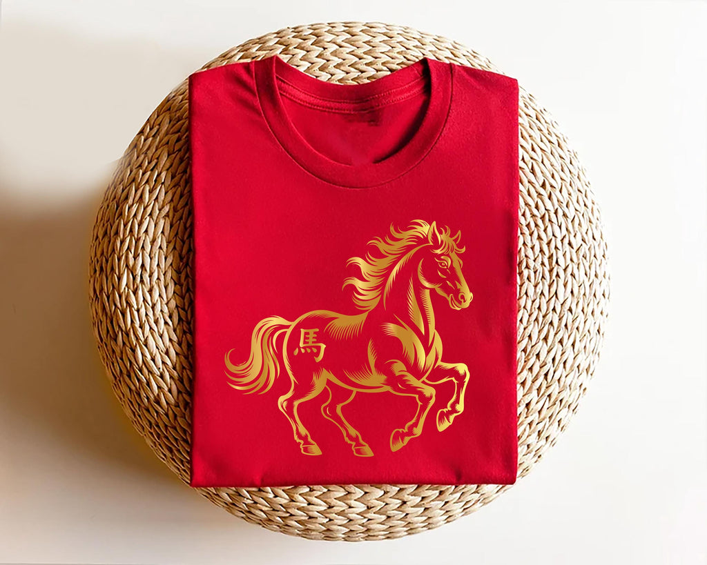 Celebrate the Year of the Horse with our Happy Chinese New Year 2026 Shirt! Designed with a modern crescent and horse motif, this festive tee brings luck, joy, and style to your Lunar New Year celebrations.