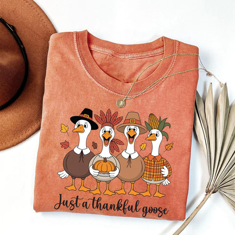 π βJust a Thankful Gooseβ + silly pilgrim goose design π Perfect for Friendsgiving and family turkey day gatherings π Unisex fit for kids, adults, and groups π Soft, breathable fabric with durable print π Great for Thanksgiving dinners, fall celebrations, and matching family outfits π Fun gift idea for friends, family, and holiday humor lovers π A silly and festive way to celebrate being thankful this Thanksgiving