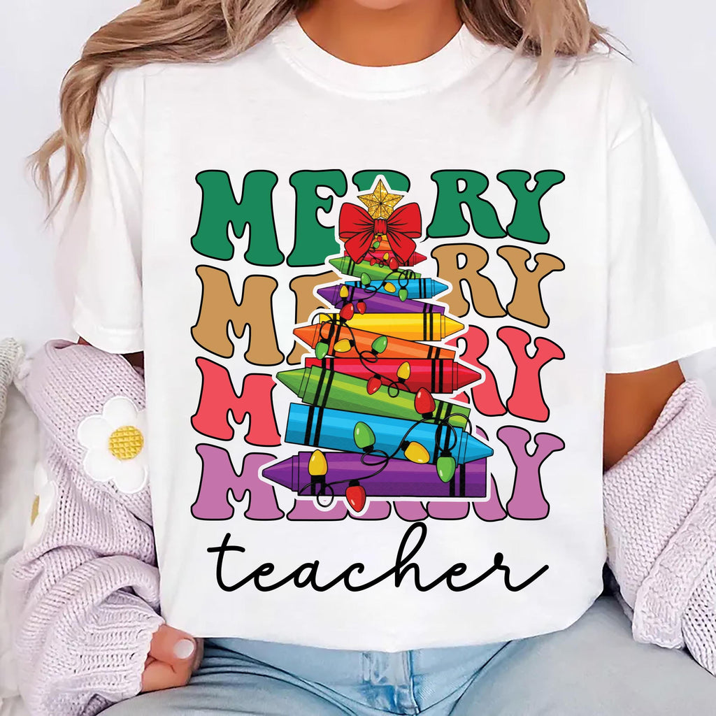 Spread holiday cheer with our Merry Teacher Shirt! Designed especially for educators, this festive tee makes a thoughtful Christmas gift for teachers to wear during the holiday season.