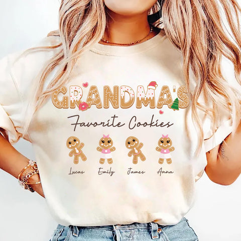 Make Grandma’s holiday extra special with our Personalized Grandma Christmas Shirt! Featuring a cute gingerbread and cookie design, this cozy tee can be customized with her name or grandkids’ names for a sweet holiday touch.