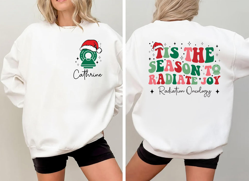 Spread holiday cheer with our Personalized Radiation Oncology Christmas Shirt! Designed for medical professionals, radiation therapists, and oncology staff, this festive tee is a perfect mix of care and celebration.