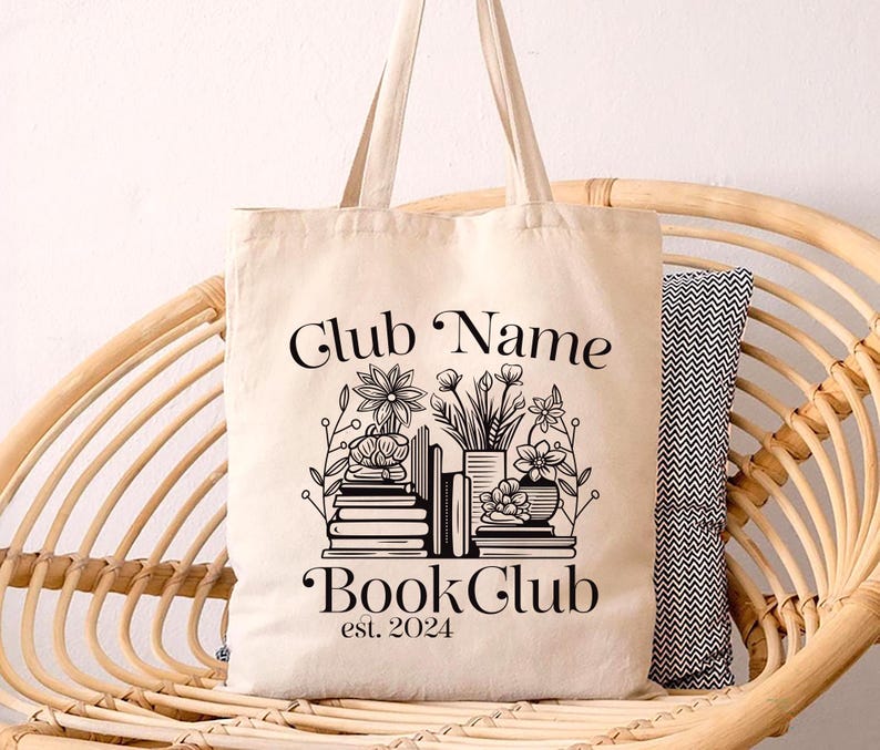 Custom Book Club Tote Bag, Personalized Reading Club Tote Bag, Book Lover Gift, Booktrovert Bag, Bookworm Gift, Reader Gift, Bookish Gift
