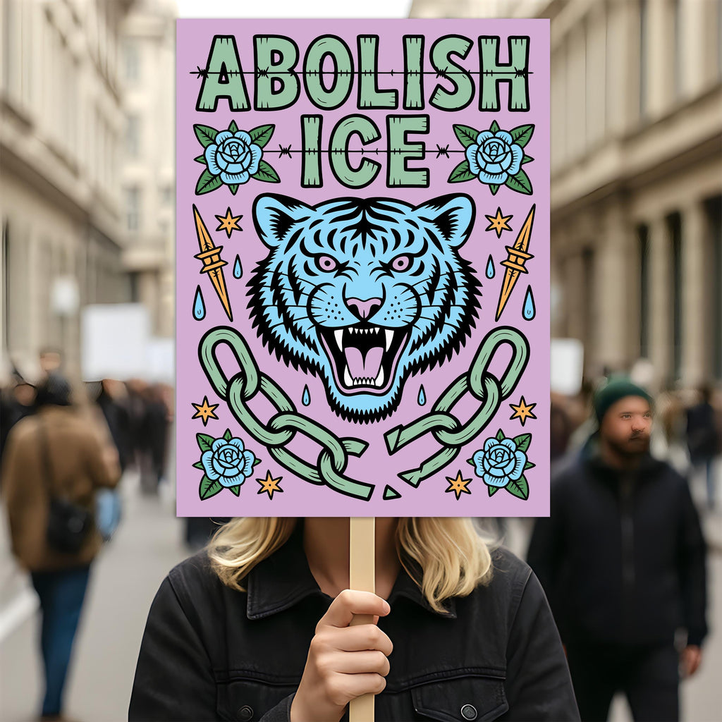 Abolish ICE No One Is Illegal Protest Sign, No Kings In America, Anti-Trump Resistance Political Protest Poster, Resist Fascism Rally Sign