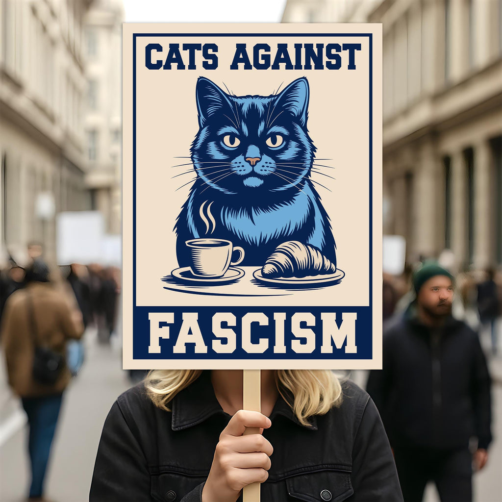 Cats Against Fascism No Kings Protest Sign, Anti-Trump, Political Activist Rally Sign, Resist Fascism Protest Poster