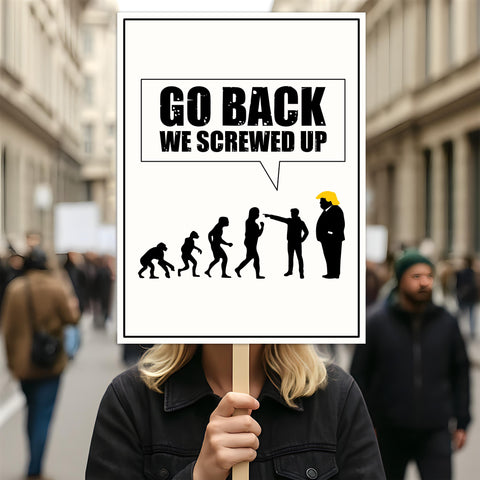 Go Back We Screwed Up Protest Sign, Anti-Trump, Political Activist Poster, No Kings Rally Sign, Resist Fascism Protest Poster.