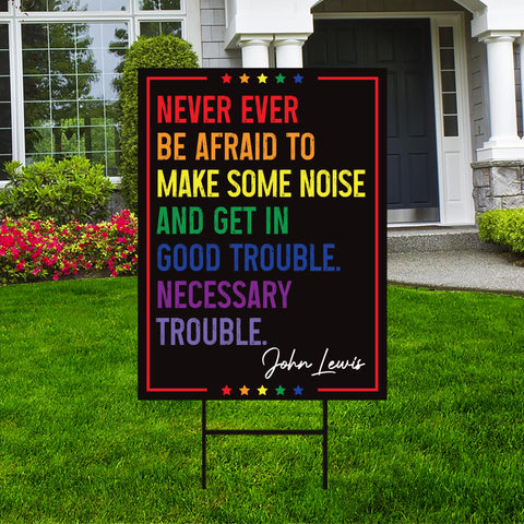 Good Trouble John Lewis Protest Yard Sign, Resist Hate, Anti-Trump, Resist Racism, Resist Fascism, Resistance Sign with Metal H-Stake