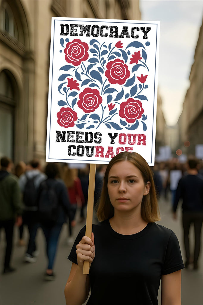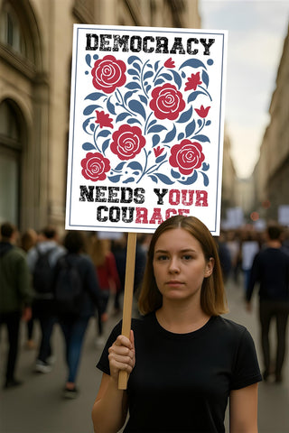 Democracy Needs Your Courage, No Kings Protest Sign, Anti-Trump, Political Activist Poster, Rally Sign, Resist Fascism Protest Poster