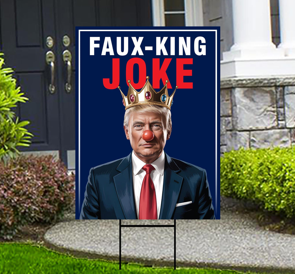 Faux King Joke, No Kings In America Yard Sign, Resist Hate Lawn Sign, Anti-Trump