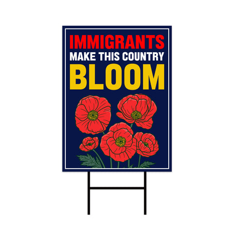 Immigrants Make This Country Bloom Yard Sign - Resist Hate Lawn Sign, Anti-Trump Sign, Resist Racism, Resist Fascism Yard Sign with Metal H-Stake. Economical and durable, our Coroplast Yard Signs are a staple of outdoor advertising. These outdoor Resist Yard Sign full color direct printed graphics are vertically fluted for use with an H-Stake. Coroplast is typically used for yard, parking, real estate, and election signs. They are waterproof. Crafted with care, each piece is made to order, ensuring a unique, personalized touch just for you