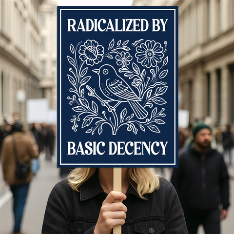 Radicalized by Basic Decency Protest Sign, Anti-Trump, Immigrants Rights, Political Activist Rally Sign, Resist Fascism Protest Poster