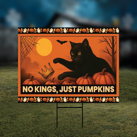 Subtle Anti-Trump Halloween No Kings Yard Sign, Resist Hate Lawn Sign, Anti-Trump Sign, Black Cat Resist Racism Yard Sign with Metal H-Stake. Economical and durable, our Coroplast Yard Signs are a staple of outdoor advertising. These outdoor Resist Yard Sign full color direct printed graphics are vertically fluted for use with an H-Stake. Coroplast is typically used for yard, parking, real estate, and election signs. They are waterproof. Crafted with care, each piece is made to order, ensuring a unique, personalized touch just for you
