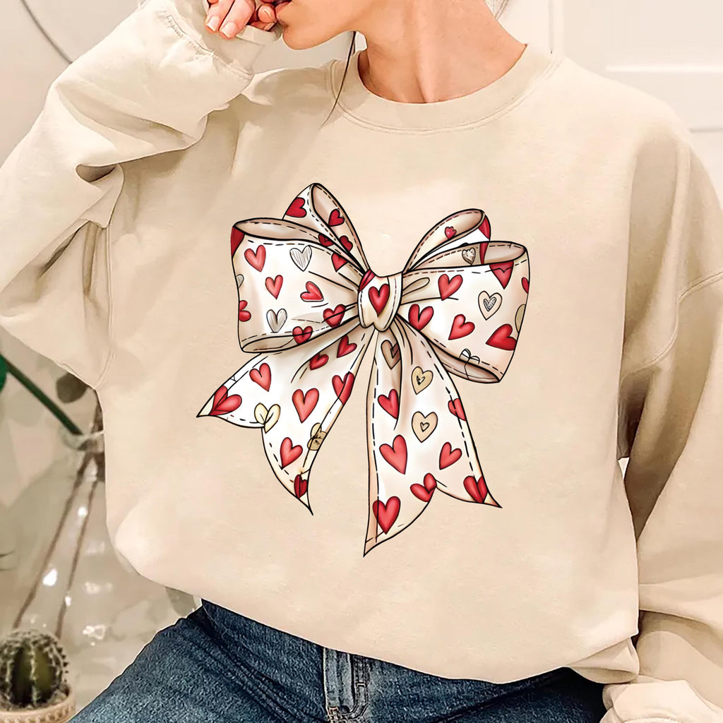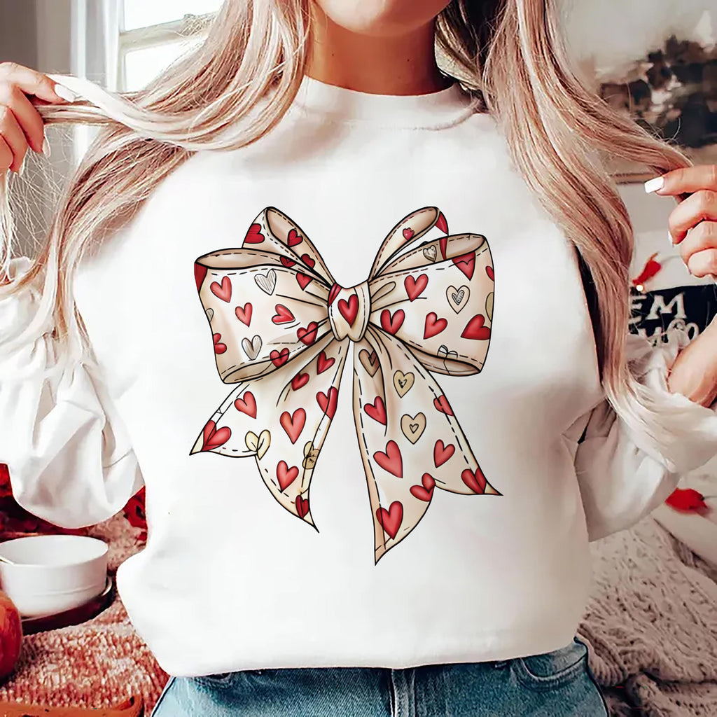 Coquette Bow Heart Sweatshirt, Valentine Bow Tee, Cute Heart Love Top, Girly Coquette Valentine Gift