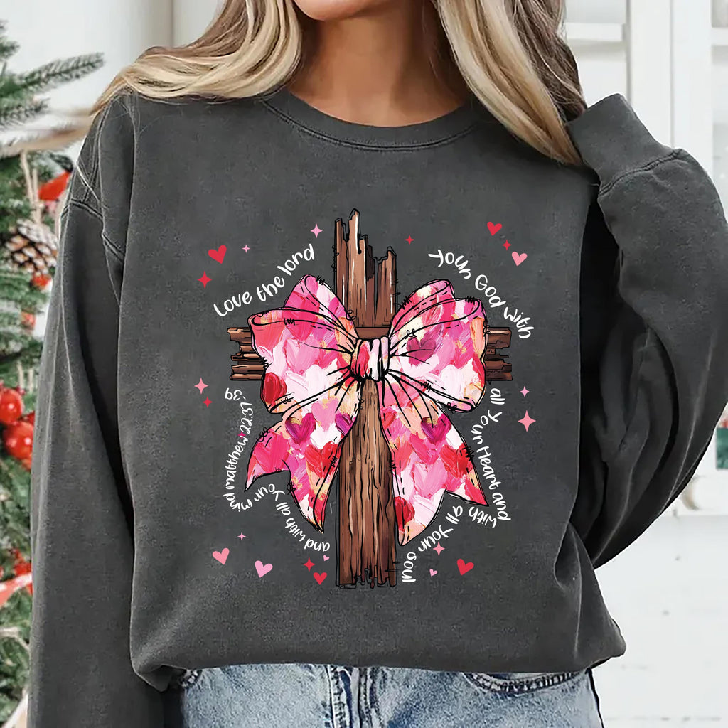 Coquette Valentine Jesus Sweatshirt, Valentine Bow Bible Verse Tee, Love Jesus Sweatshirt