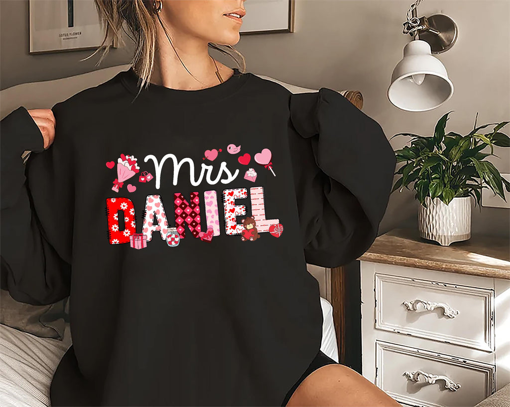 Custom Teacher Valentine Sweatshirt, Valentine's Day Shirt for Women, Teacher Name Valentine Sweatshirt