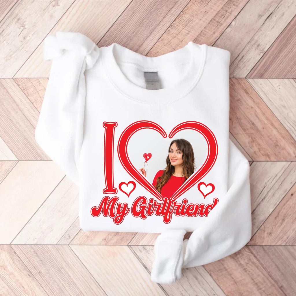 Celebrate your love with this I Love My Girlfriend Shirt — a sweet and meaningful Valentine gift that becomes even more special with your custom photo.