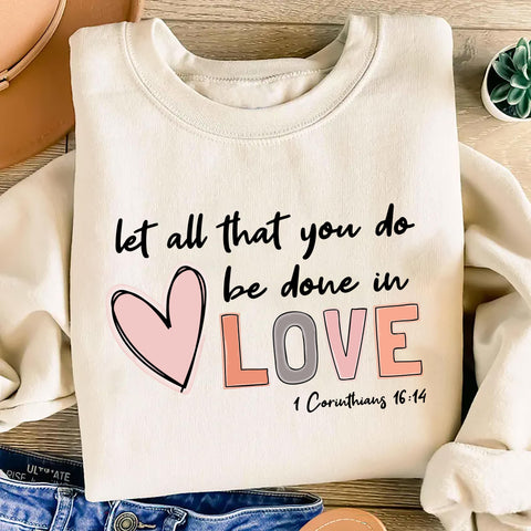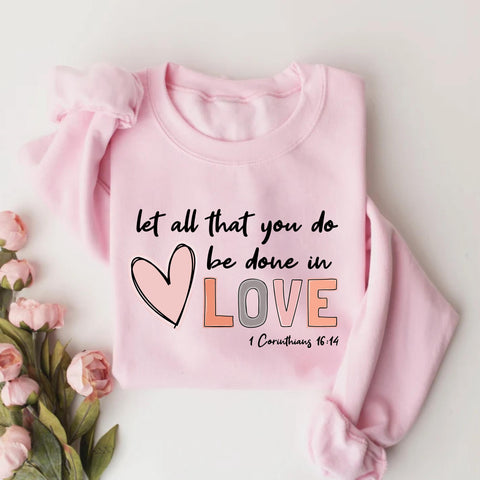 Let All That You Do Be Done in Love Sweatshirt, Valentine's Day Shirt for Women, Cute Valentine's Day Sweatshirt
