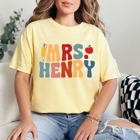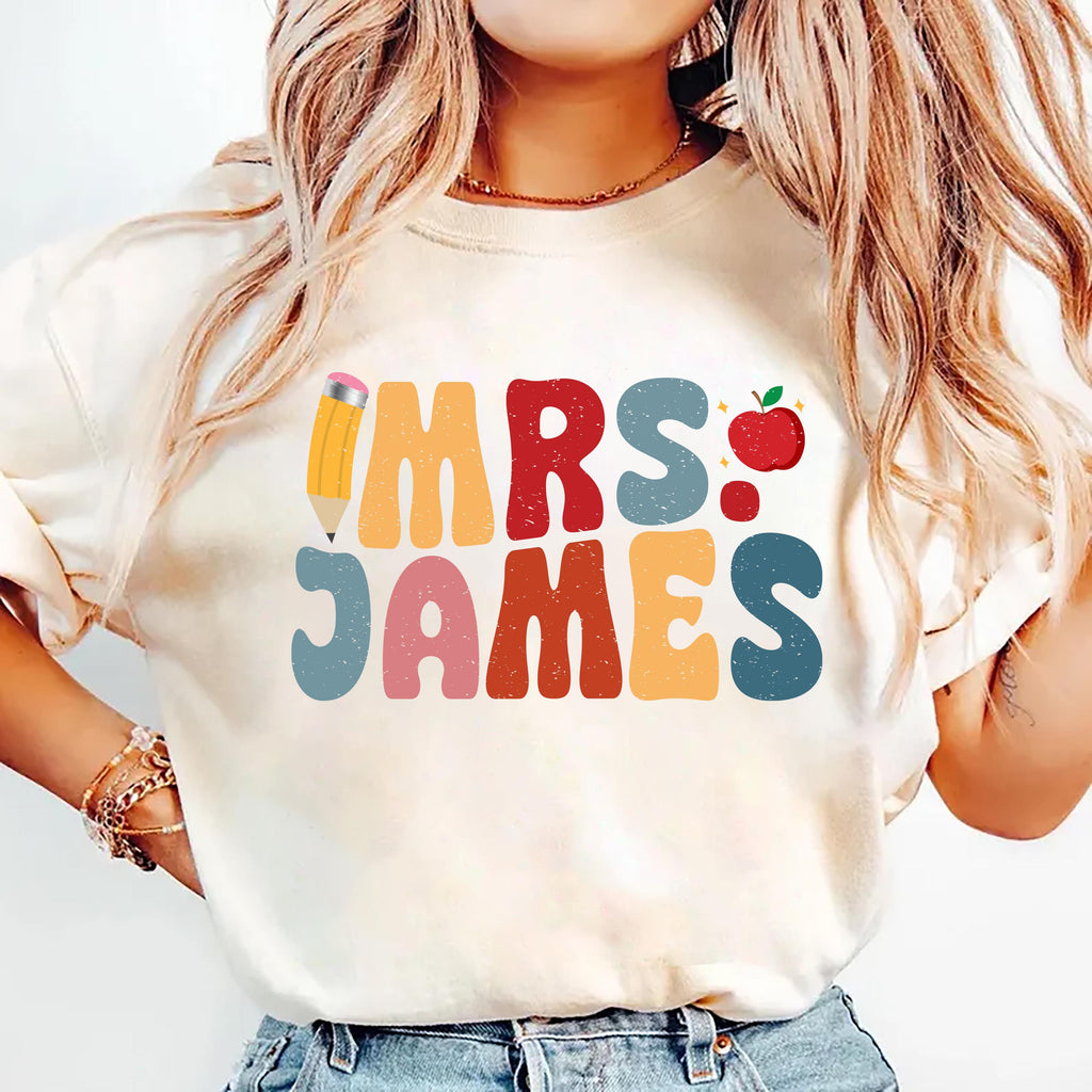 Celebrate your classroom style with this personalized teacher shirt — customize it with your name to create a meaningful and cute teacher outfit for the first day of school or everyday teaching.