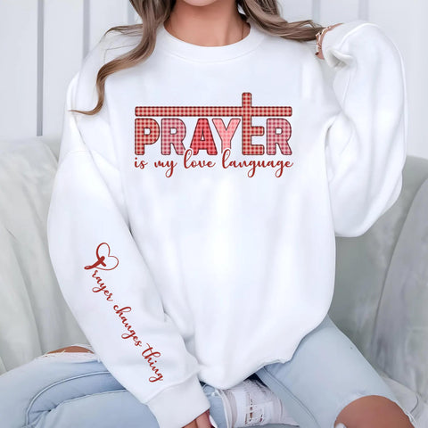 Prayer Is My Love Language Sweatshirt, Christian Valentines Tee, Retro Checkered Valentine Jesus Sweatshirt