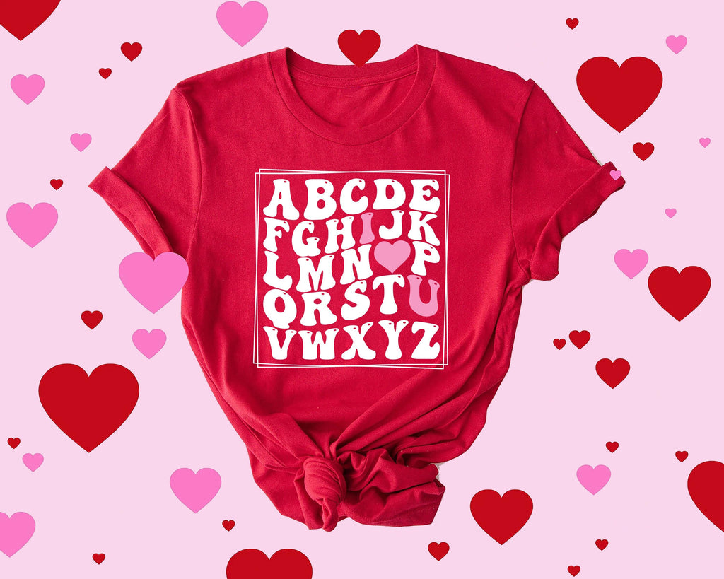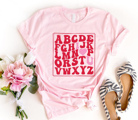 Teacher Valentine Shirt, Retro Alphabet Love Tee, Cute Teacher Valentines Day Shirt, Classroom Valentine Outfit