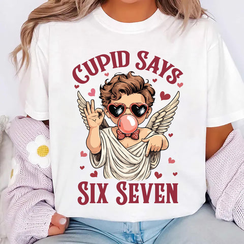 Celebrate Valentine’s Day with a playful twist in this “Cupid Says 67” vintage cherub design — perfect for women who love retro romance and fun holiday humor.