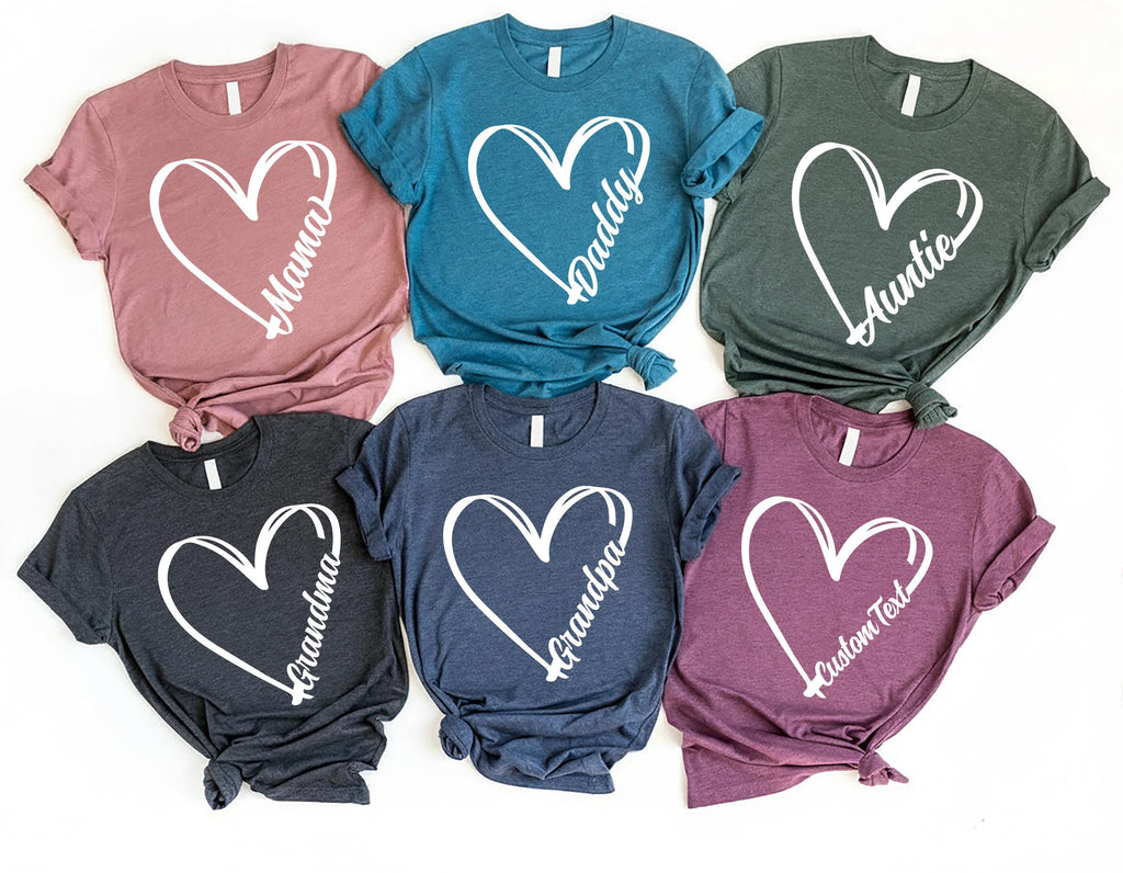 Create a meaningful gift with this Custom Text Heart Line Shirt — featuring a delicate double-heart design personalized with any name for moms, grandmas, and loved ones.