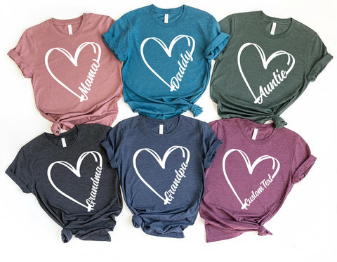 Custom Text Heart Line Shirt, Double Heart Name Tee, Personalized Mom Shirt, Custom Grandma Gift