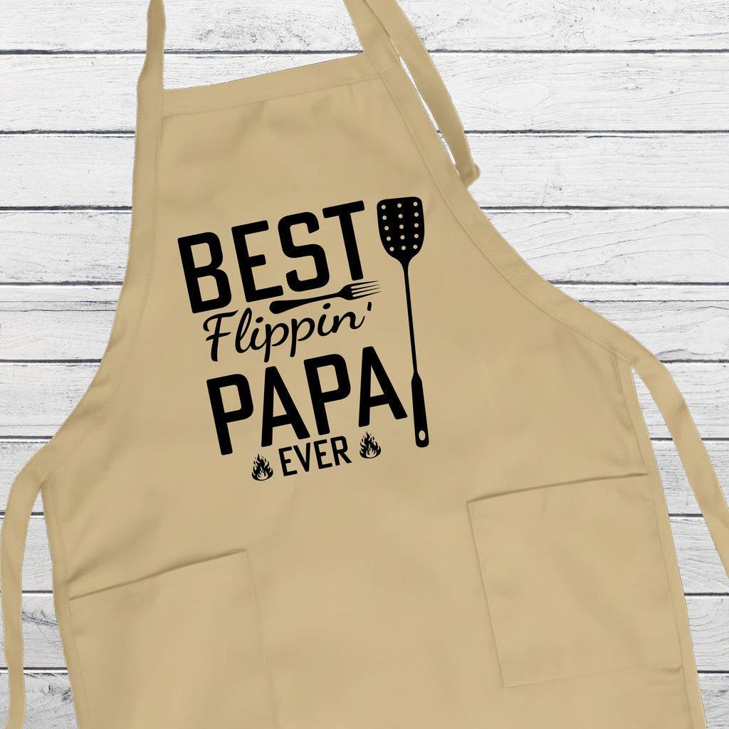 Celebrate the grill-loving dad in your life with this “Best Flippin’ Papa” apron—perfect for backyard BBQs, weekend cooking, and every dad who loves being the family chef. Comfortable, durable, and made for real grilling moments.