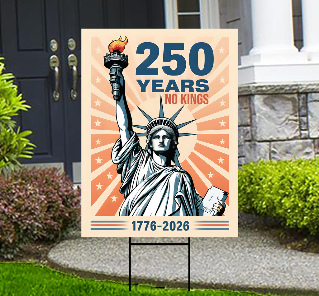 America 250 Anniversary 250 YEARS Protest Yard Sign - Anti-Trump, No Kings In America, Pro Democracy, Anti Fascist Sign with Metal H-Stake