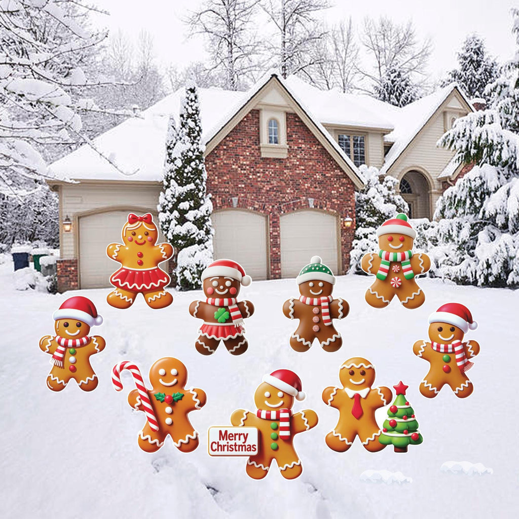 Sweeten your holiday display with our Christmas Gingerbread Man Yard Signs! Featuring festive gingerbread characters with candy canes, scarves, Santa hats, and a holiday tree, this set is perfect for lawns, gardens, patios, and walkways. Made from durable 4mm corrugated plastic, each sign is UV-printed for vibrant, fade-resistant color and waterproof for long-lasting outdoor use. Rust-free metal stakes are included for easy setup and secure display.