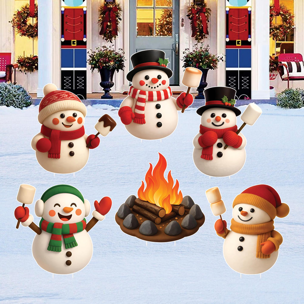 Bring warmth and cheer to your outdoor décor with our Christmas Snowman Campfire Yard Signs! This adorable set features five smiling snowmen roasting marshmallows around a cozy bonfire—perfect for creating a festive winter wonderland. Made from durable 4mm corrugated plastic, UV-printed for long-lasting, fade-resistant colors, and includes rust-free metal stakes for easy setup in your lawn, garden, or walkway.