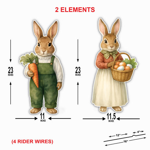 Add charming springtime cheer to your yard with this adorable Easter bunny yard sign cutout set. Featuring two classic bunnies—one holding a carrot and the other carrying an egg basket—this design brings a warm, farmhouse Easter feel to any outdoor space.