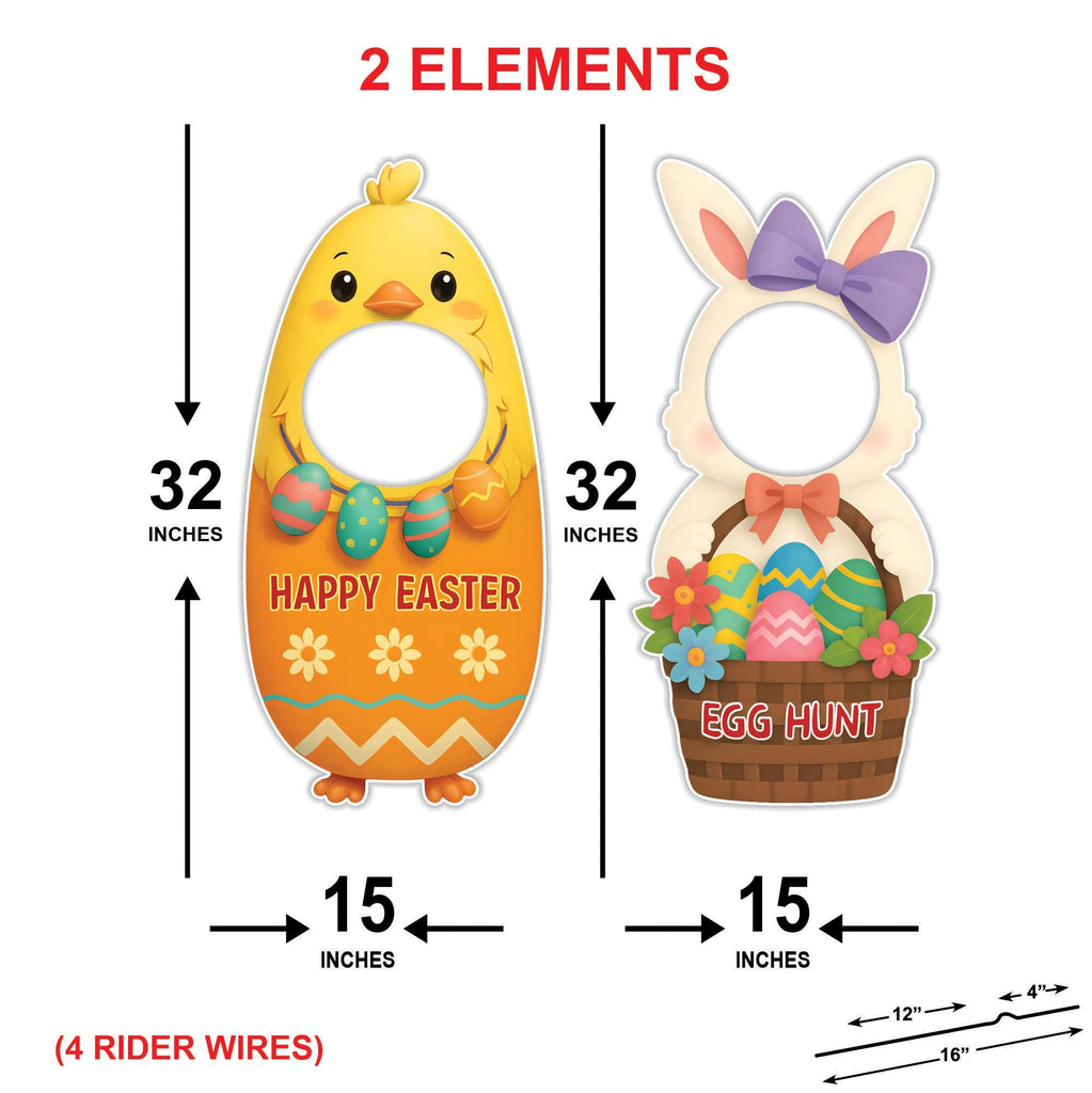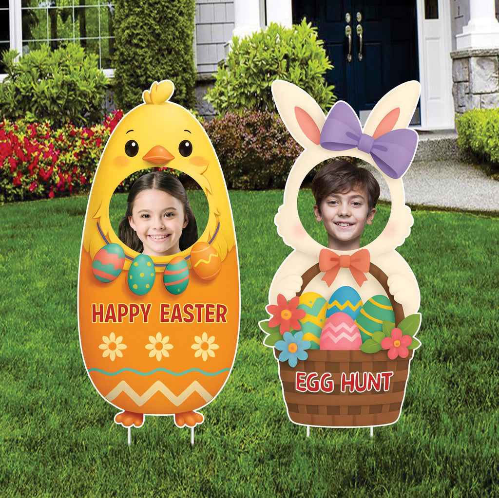 Add cheerful Easter charm to your outdoor décor with this fun bunny and chick face yard sign cutout set. Featuring playful Easter designs with festive eggs and spring colors, these signs create a welcoming display perfect for Easter celebrations and egg hunt décor.