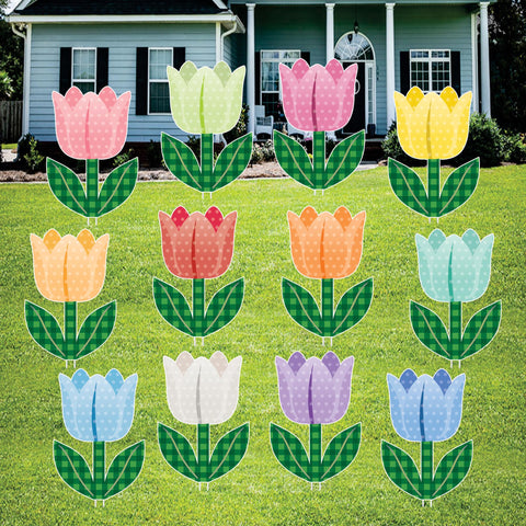 Brighten your outdoor space with this cheerful Easter tulip yard sign set, featuring colorful spring flowers with playful patterns. These floral cutouts add a fresh seasonal touch and are perfect for welcoming Easter and springtime.