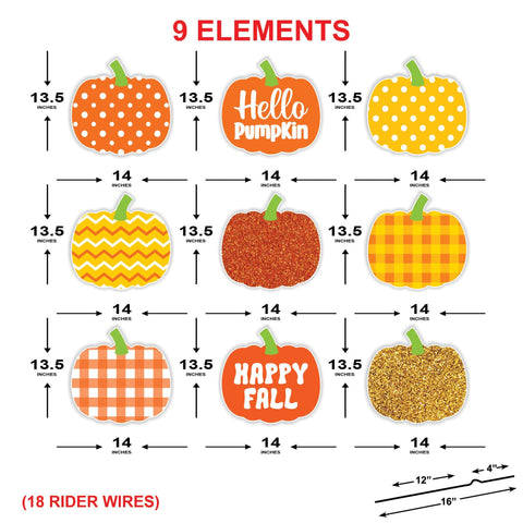 • Set includes 9 patterned pumpkin designs with “Happy Fall” and “Hello Pumpkin” signs