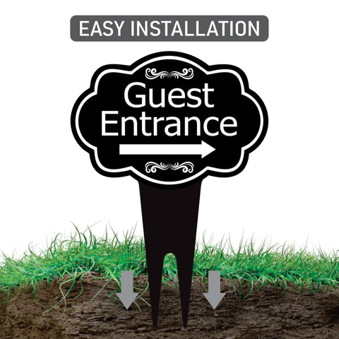 Guide guests with ease using our Guest Entrance Yard Sign – crafted from durable, rust-free aluminum and sized at 10" x 14". This weatherproof sign includes an integrated metal stake, making installation effortless in any lawn or outdoor setting. Whether for events, private residences, or business locations, this directional guest sign is both practical and welcoming.