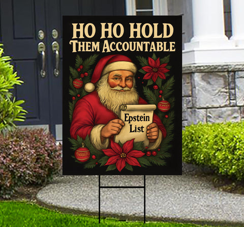 Hold Them Accountable Epstein List Protest Yard Sign - Anti-Trump Christmas, No Kings, Resist Fascism Yard Sign with Metal H-Stake. Economical and durable, our Coroplast Yard Signs are a staple of outdoor advertising. These outdoor Resist Yard Sign full color direct printed graphics are vertically fluted for use with an H-Stake. Coroplast is typically used for yard, parking, real estate, and election signs. They are waterproof. Crafted with care, each piece is made to order, ensuring a unique, personalized touch just for you
