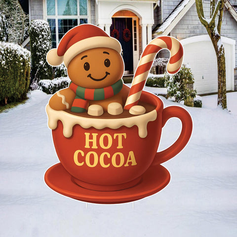 Warm up your outdoor holiday décor with this adorable Hot Cocoa Gingerbread Yard Sign! Featuring a smiling gingerbread character sitting in a festive mug of cocoa with a candy cane, this charming design adds sweetness and joy to your Christmas display. Made from durable 4mm corrugated plastic, it’s weatherproof, UV-printed, and designed to last all season without fading. Comes with metal stakes for secure placement on lawns, gardens, patios, or pathways.
