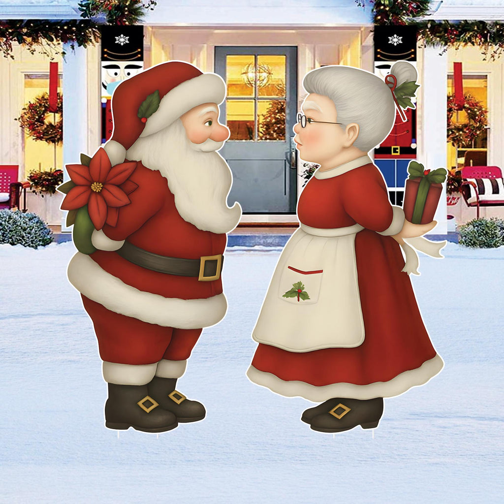 Add a touch of Christmas love and laughter to your outdoor space with this charming Kissing Santa & Mrs. Claus Yard Sign set!