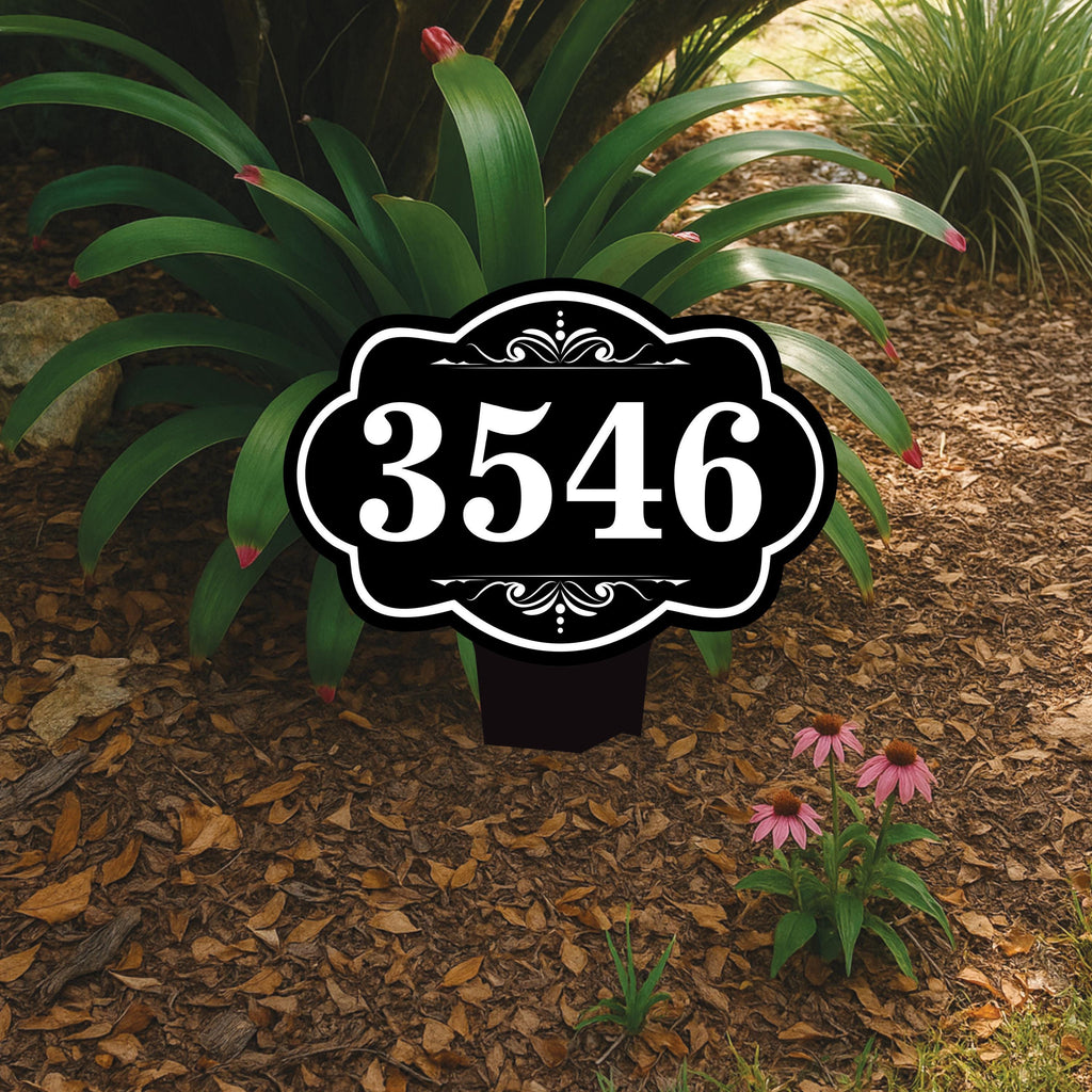 Personalized Elegance for Your Lawn: 10” x 14” Address Plaque Yard Sign - Rust-free Aluminum, House Number Sign Plate with Integrated Stake – Perfect for Garden, Ground, and Sideway Display.