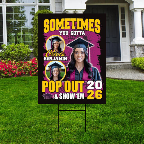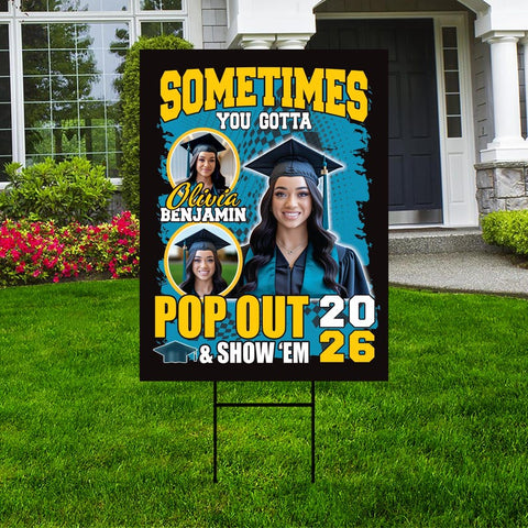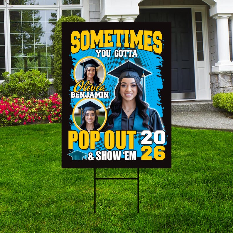 Personalized Graduation Yard Sign 2026 with Photo - Grad Sign, Class of 2026, Custom Graduation 2026 Yard Sign with Metal H-Stake. Economical and durable, our Coroplast Yard Signs are a staple of outdoor advertising. These Custom Class of 2026 Yard Sign for Business full color direct printed graphics are vertically fluted for use with an H-Stake. Coroplast is typically used for yard, parking, real estate, and election signs. They are waterproof.