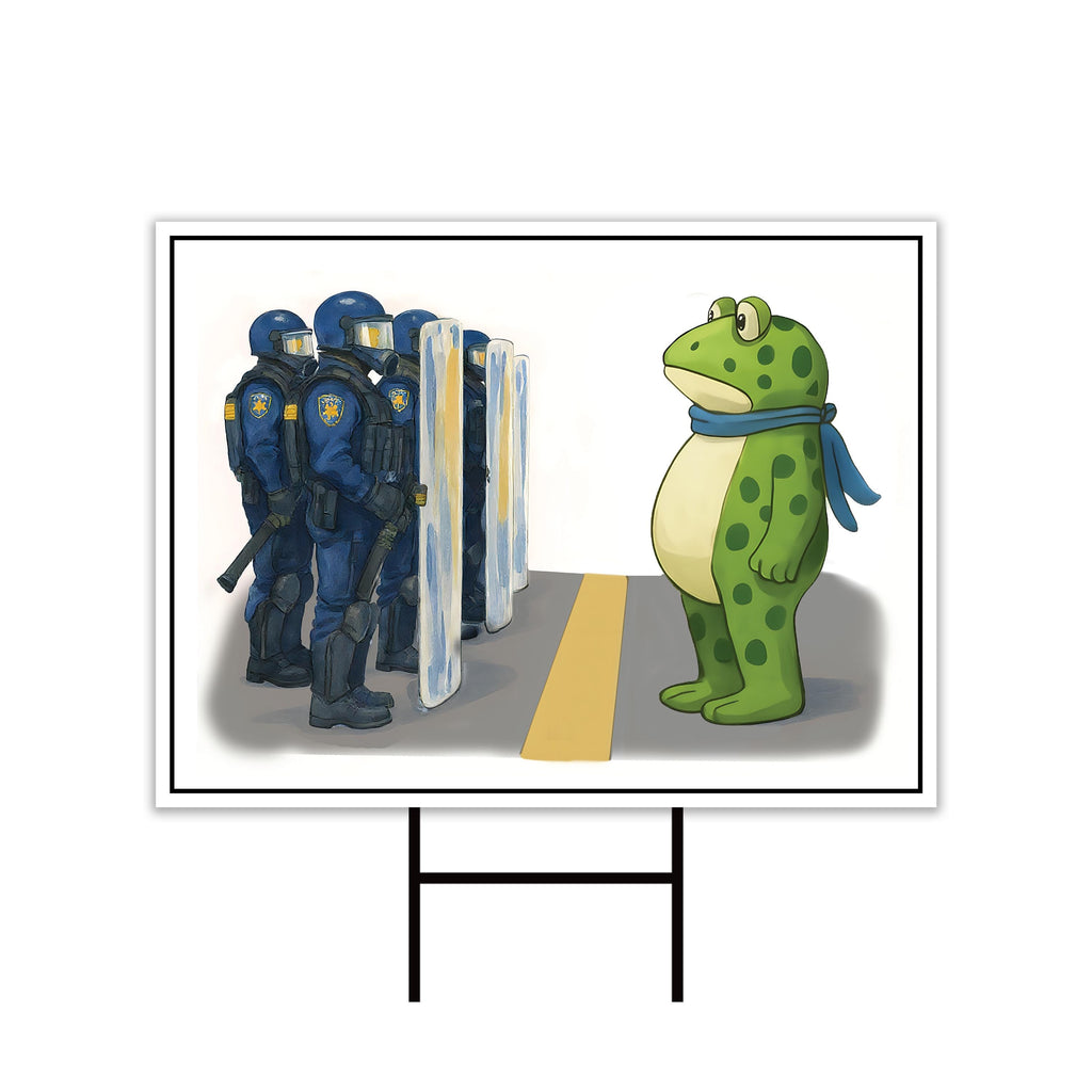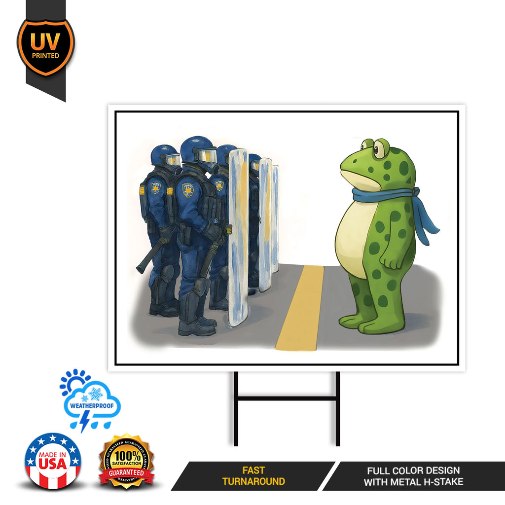 Portland Frog Anti-ICE Protest Yard Sign - Anti-Trump, No Kings In America, Protect Democracy, Resist Fascism Yard Sign with Metal H-Stake