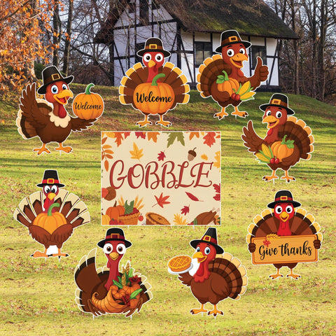 Add a touch of harvest joy with these reusable turkey yard signs that spread Thanksgiving spirit to family, friends, and neighbors!